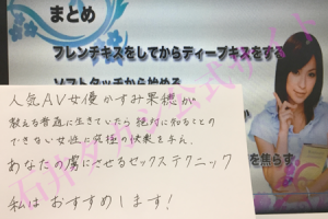 『AV女優かすみ果穂が教える普通に生きていたら絶対に知ることのできない女性に快楽を与え、あなたの虜にさせるセックステクニック』を購入して実践した、飲食店勤務(30歳)のメルマガ読者さんから感想が届きましたので紹介します。